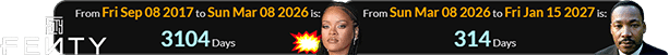 Rihanna was born 322 days after the MLK assassination, and the shooting was 3022 weeks, 3 days after it: