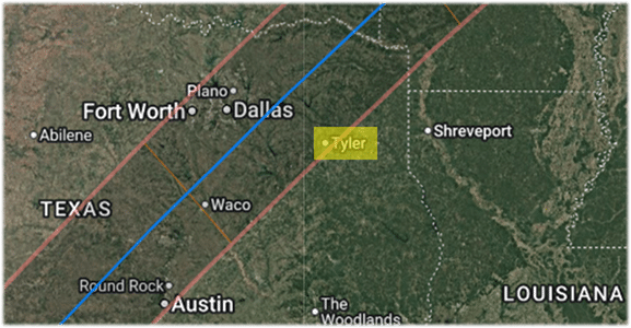 The Eclipse over Tyler, Texas was exactly 1 years, 11 months before Rihanna’s home in Beverly Hills, California was shot up: