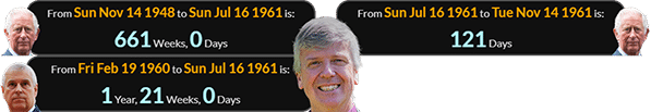He was born exactly 661 weeks after Charles III and 1 year, 21 weeks after Andrew Mountbatten-Windsor: