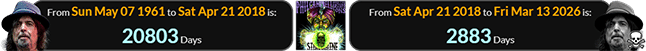 Phil was 20803 days of age when Silver Machine was released and died 2883 days later: