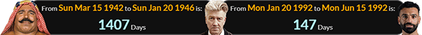 David Lynch was born 1407 days after the Iron Sheik, and Mo Salah was born 147 days after David’s birthday: