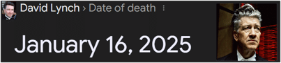 This execution was a lynching. On the date 1/16 last year, film director David Lynch passed away (see my post):