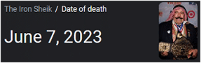 The Iron Sheik died on June 7th. That was also the birthday of The Original Sheik, whose nephew Sabu died last year (see my post).