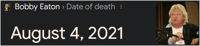 Bobby Eaton died on a date with Standard numerology of 33:![]()