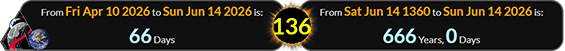 The Pluto return was on the 13th of June, or 13/6. Artemis II’s return also falls a span of 66 days before Solar Saros # 136 turns 666 years old: