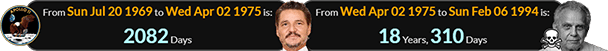 Pedro Pascal was born 2082 days after the first Moon landing and 18 years, 310 days before the death of Jack Kirby: