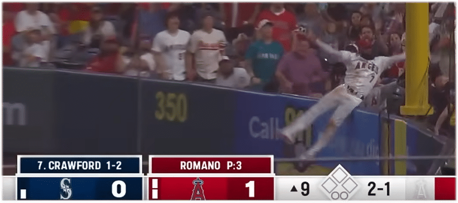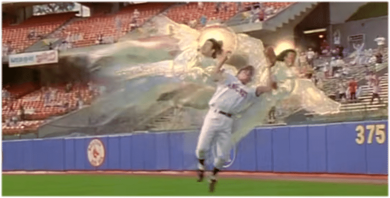 This third and final home run robbery was on a long fly ball by Mariners shortstop J.P. Crawford. This is quite fascinating, because J.P. is the name of the protagonist’s best friend in the 1994 classic film Angels in the Outfield, where real angels swoop in and help the California Angels in their quest to win a pennant: