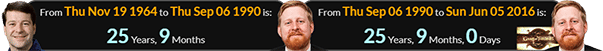Michael Patrick was born 25 years, 9 months after Nicholas Patrick, and was a span of exactly 25 years, 9 months old for his appearance on Game of Thrones: