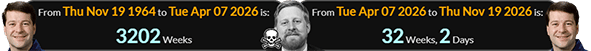 Former astronaut Nicholas Patrick was 3202 weeks old when Michael died and 32 weeks, 2 days before his next birthday: