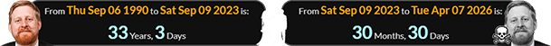 Michael Patrick was 33 years, 3 days old for his Wedding and died a span of 30 months, 30 days later: