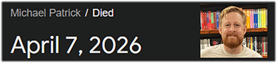 Some sources are reporting that Patrick died on April 8th, which was the anniversary of the Great American Eclipse. April 7th was 729 days after that Eclipse, which is similar to NASA’s founding date of 7/29.