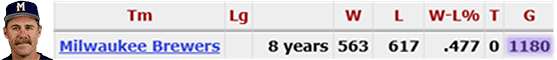 Garner managed the Brewers of Milwaukee, Wisconsin for total of 1180 games: