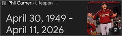 Phil Garner was born on April 30th and died on April 11th: