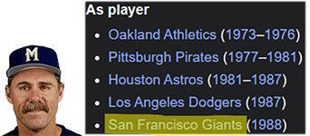 The last team Phil Garner played for was the San Francisco Giants: