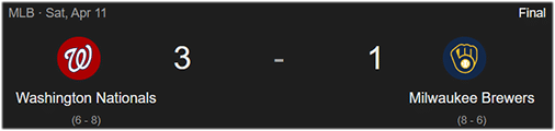 Phil, whose nickname was Scrap-Iron, died the same day the Brewers lost by a score of 1-3 to Washington: