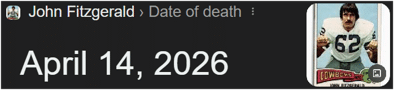 John Fitzgerald passed away 207 days after the 54th anniversary of his NFL debut: