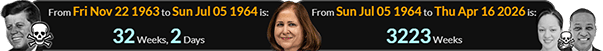 JFK would have been 3220 weeks old for Fairfax’s birth and 322 days after his birthday for his death: