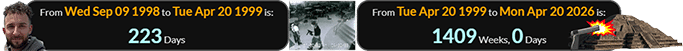 The shooter Julio Ramirez was born 223 days before the Columbine massacre, and carried out his own shooting a span of exactly 1409 weeks later: