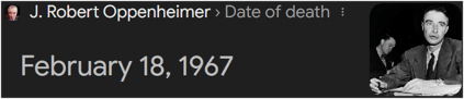 J. Robert Oppenheimer met Death in ’67 on February 18th, or 2/18: