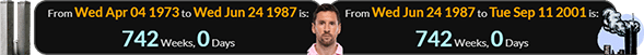 Lionel Messi was born exactly 742 weeks after the Twin Towers opened and a span of exactly 742 weeks old when they were destroyed: