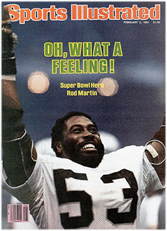 After his heroic defensive performance in Super Bowl XV, Rod Martin graced the cover of Sports Illustrated, which was the most renowned sports publication at the time: