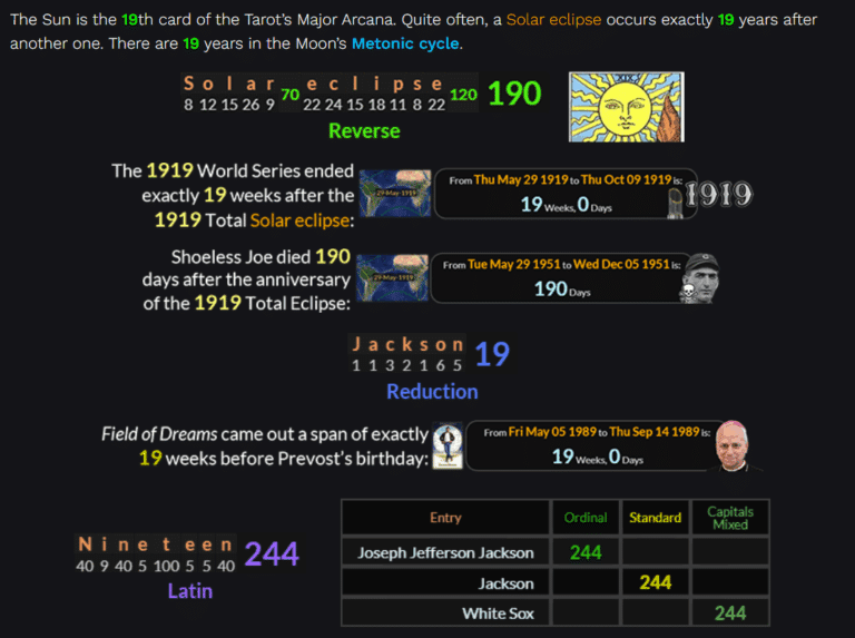 The Sun, The Moon, and the Eclipse Code for Shoeless Joe