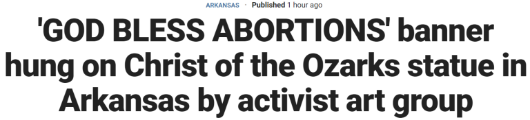 Pro-Abortion Sign Hung on Christ of the Ozarks Statue