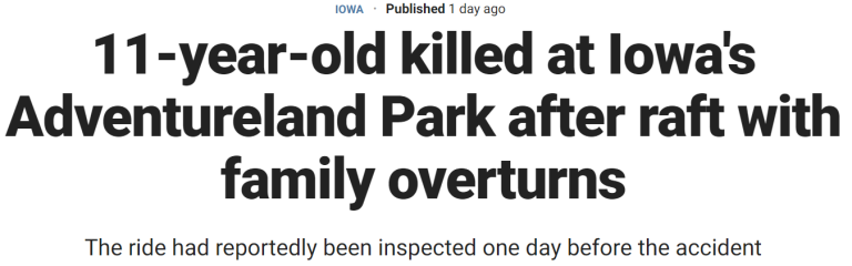 11-Year-Old Dies on Amusement Park Ride in Iowa