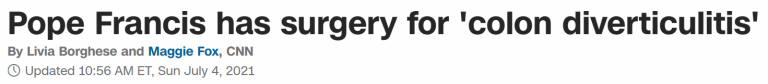 Pope to Have Surgery for “Colon Diverticulitis”