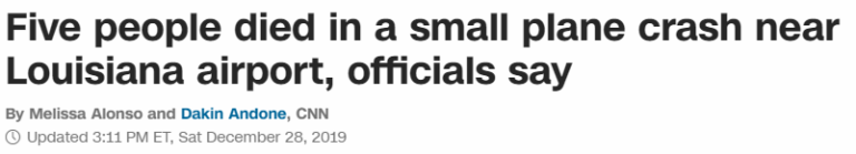 Louisiana Plane Crash Kills 5