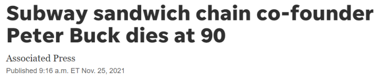 Subway Founder Peter Buck Dies @ 90