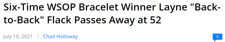 Poker Champion Layne Flack Dies @ 52