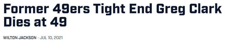 Former 49ers Tight End Greg Clark Dies @ 49
