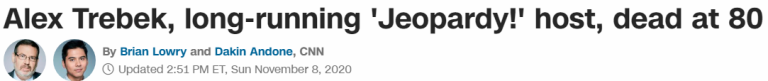 Jeopardy Host Alex Trebek Dies @ 80