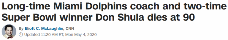 NFL Hall of Fame Coach Don Shula Dies @ 90