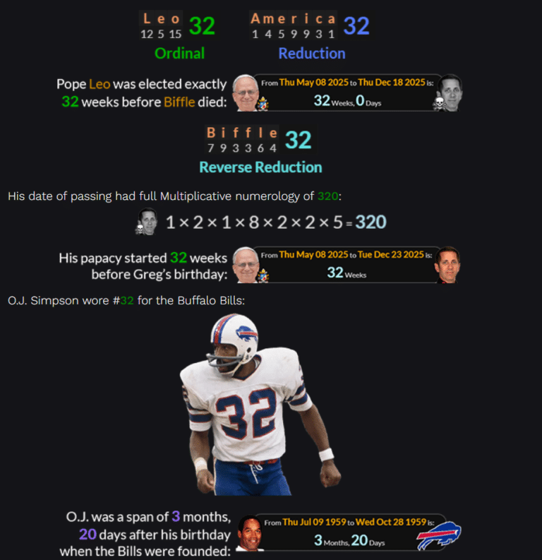 Death by Numbers Biffle’s Crash Was 32 Weeks into Leo’s Papacy – O.J. Simpson and More December 19, 2025