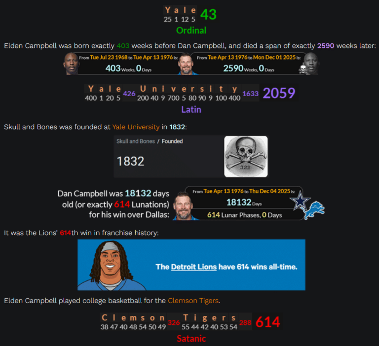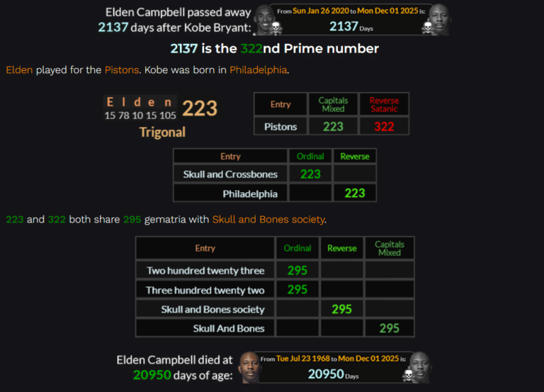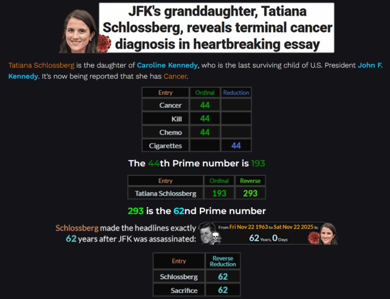 News by the Numbers The Number of the Beast and Skull & Bones Coding for Tatiana Schlossberg November 23, 2025