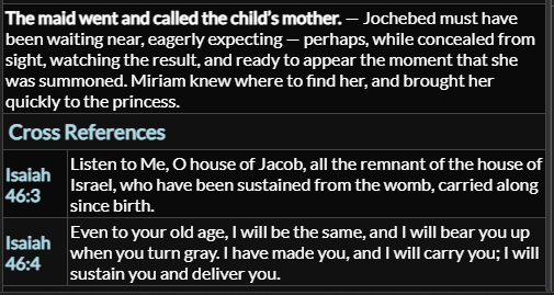Below that you will find commentary and a list of cross references for the verse. You can click the verse name and number to go to that verse