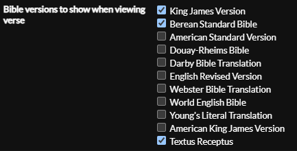 By default you will see the King James Version. You can change this using the dropdown in the top right and you can select the default version to show in the settings tab.