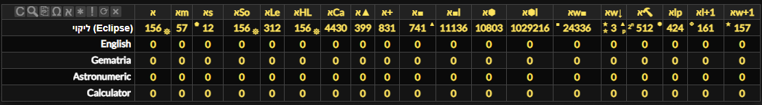 If you click the button on the gematria table or by the sidebar, or use the keyboard shortcut , you can open the gematria match table. To use it, simply enter a comma or space separated list of numbers that you want to match from the gematria table and it will show words that have gematria in the list.