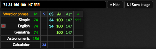 To hide the gematria match table you can click the button, press while focused on the text input or click either of the buttons.