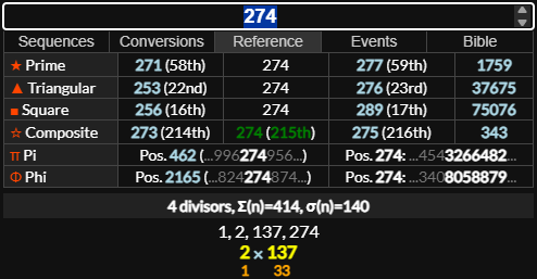Below the sequences table you can see the divisors and prime factorization. Beneath the prime factorization you see the nth prime number in orange, for example, 137 is the 33rd prime number so would have 33 below it.
