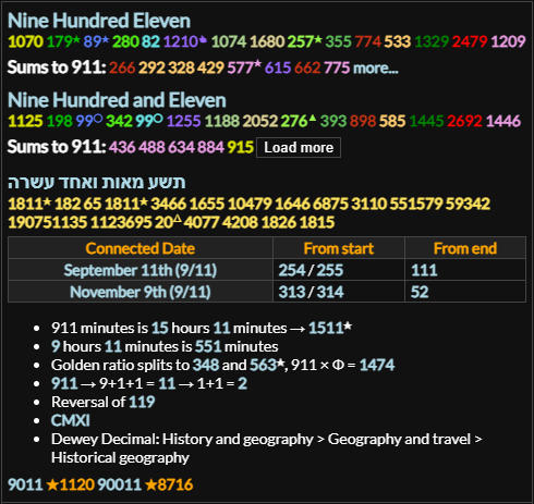 The number reference panel will show the numbers as words in English and Hebrew with the gematria of those words and numbers that equal the given number when spelled out of words. It will show dates connected to the number, for example 911 connects to September Eleventh (9/11) and 33 connects to February 2nd, the 33rd day of the year. This also gives various other kinds of information depending on the number.